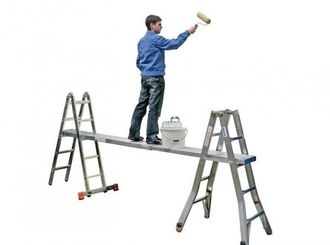 • При помощи дополнительных принадлежностей собирается в рабочие подмости, которые образуют единое целое и могут перемещаться одним движением