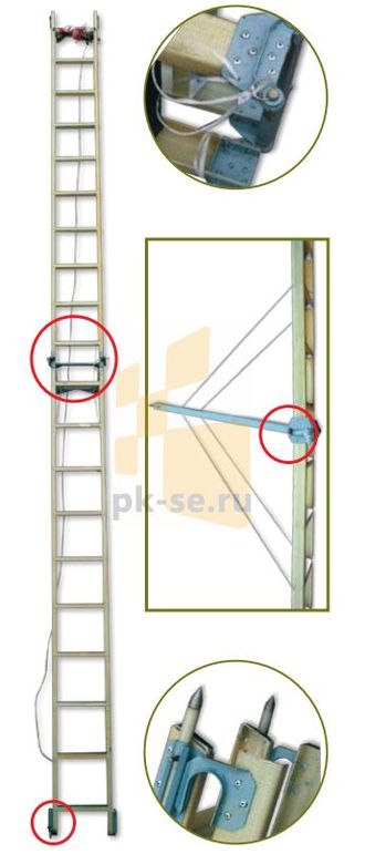 - Для крепления лестницы к опоре имеется страховочный ремень с пряжкой на верхней секции.