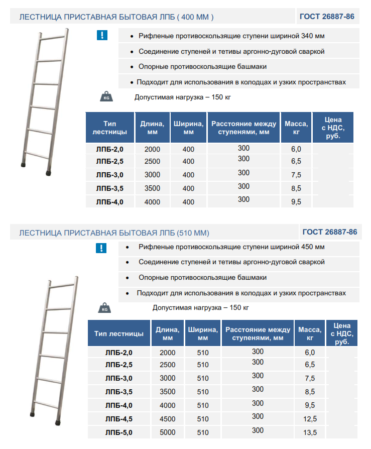 | Лестница приставная бытовая ЛПБ - 5.0 (400 мм) | |