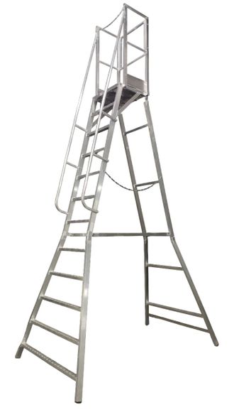 Лестница Л 312а - площадка с ограждением предназначена для удобства и безопасности ведения работ на высоте. По всему периметру площадки Л-312А имеет бортовую полосу для предотвращения соскальзывания с пола площадки. Также площадка имеет ограждение из труб, передняя сторона которого представляет собой подвижную перекладину, жестко закрепляемую фиксатором.