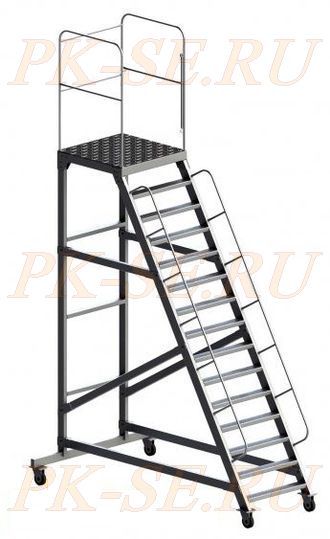 Лестница с огороженной рабочей зоной из алюминиевого профиля на 4-х колесах, тип ЛСА