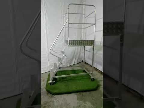 Лестница с площадкой типа ЛСА снабжена 4-мя (до 4000 мм до площадки – 2 поворотных колеса с тормозом, 2 – неповоротных без тормоза) колесами для перемещения и фиксации в определенном положении. Возможна установка винтовых опор или подпружиненных колёс. Площадка с ограждением предназначена для удобства и безопасности ведения работ на высоте и образования рабочего места непосредственно в зоне производства работ. Площадка имеет ограждение из труб, передняя сторона которого представляет собой подвижную перекладину, жестко закрепляемую фиксатором. Лестница с площадкой типа ЛСА собой сварную конструкцию, состоящую из четырех опорных стоек со ступеньками, раскосов и площадкой с ограждением (от высоты 2000 мм до площадки – перилами). В рабочем положении обладает собственной устойчивостью и не требует их крепления к несущим конструкциям зданий или сооружений. Перемещается вдоль фронта работ на колесных опорах. Стойки изготовлены из алюминиевого профиля, имеющего в поперечном сечении форму прямоугольника.