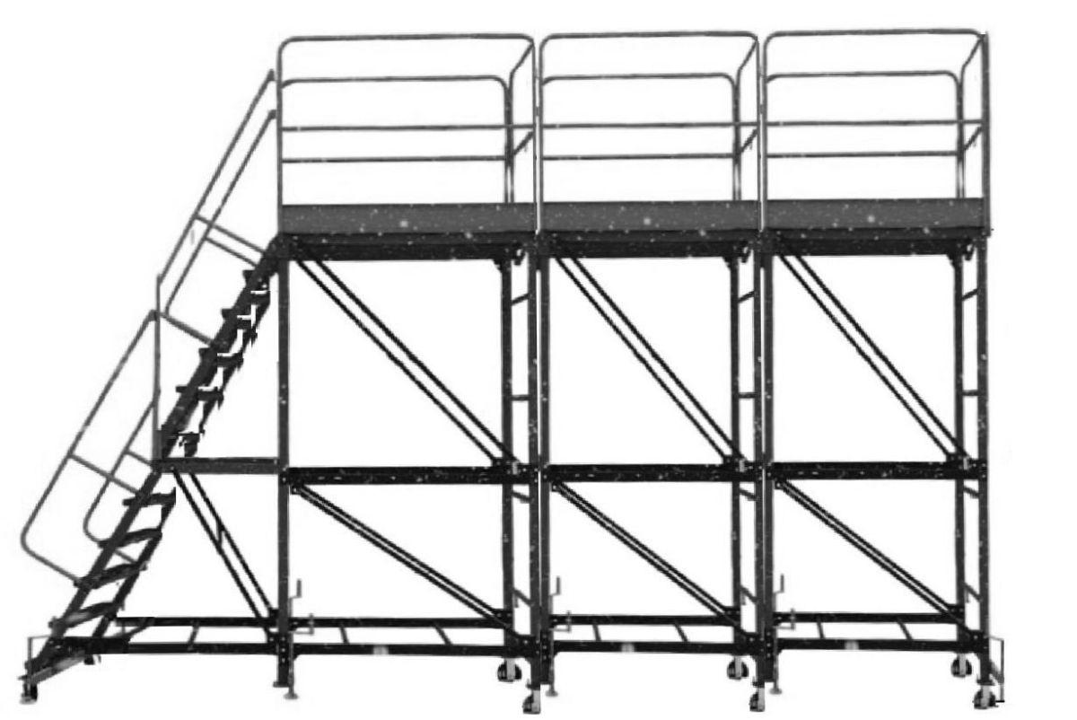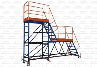 Подкатная стальная лестница с двумя рабочими площадками ЛС-2П-С