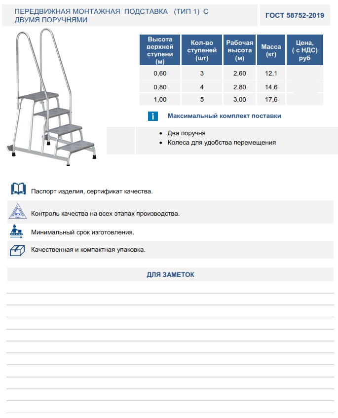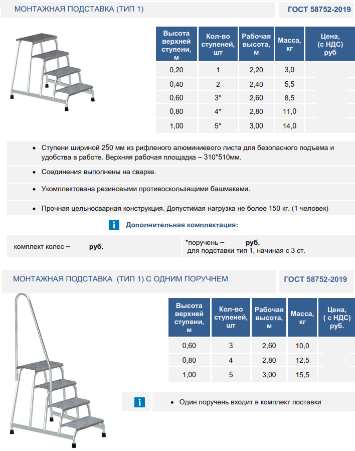 | Передвижная монтажная подставка (тип 1) 2 ступени | ||
