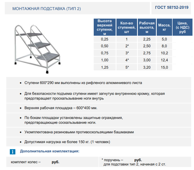 | Передвижная монтажная подставка (тип 2) 1 ступень | ||
