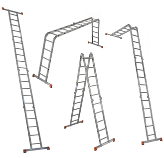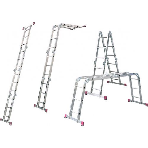 • Четырехсекционная универсальная алюминиевая шарнирная лестница: применяется как двусторонняя стремянка, как приставная лестница и как рабочая платформа