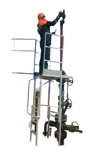 Площадка для обслуживания скважин мобильная ПЛА предназначена для производства работ по ремонту и обслуживания фонтанной арматуры на скважине, на высоте до 2,9 метра.