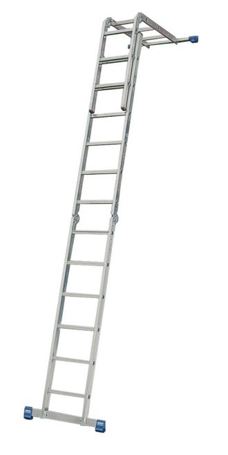 • Четырехсекционная алюминиевая шарнирная лестница с различными рабочими комбинациями.
