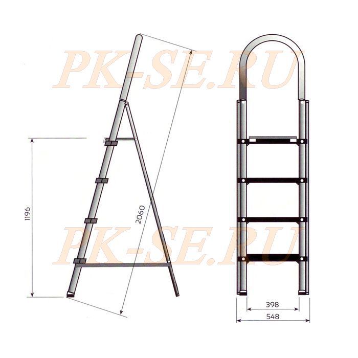 В зависимости от поверхности, на которой размещается стремянка необходимо установить металлические либо резиновые наконечники. Лестница и опоры раздвигаются на всю длину ограничительного ремня и устойчиво устанавливаются на базовой поверхности.