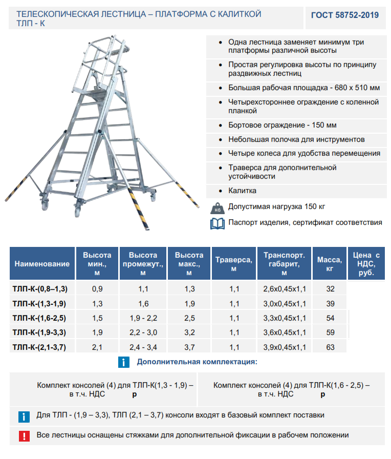 | Лестница - платформа телескопическая ТЛП (1,9-3,3) | |