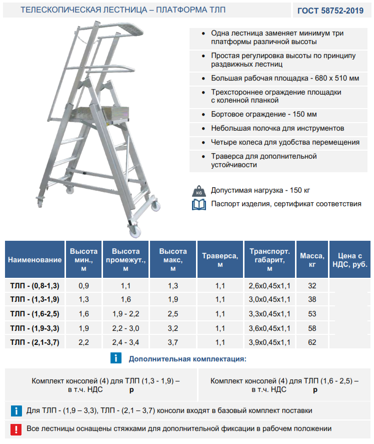 | Лестница - платформа телескопическая ТЛП (1,3-1,9) | |
