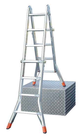 • Четырехсекционная телескопическая алюминиевая шарнирная лестница: применяется как двусторонняя