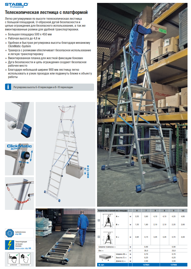 | 127648 Регулируемая телескопическая лестница-платформа с большой площадкой 10 перекладин STABILO |