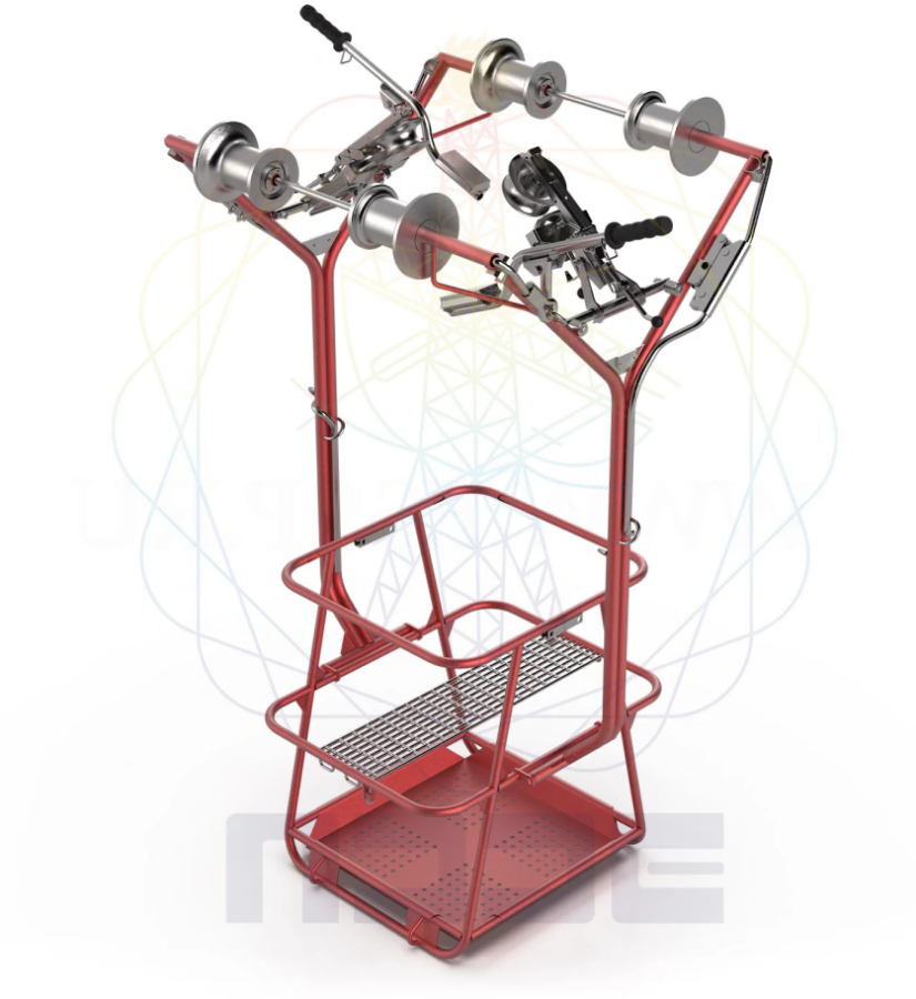 Тележка монтера. Фиксирование тележки в любой точке пролета осуществляется с помощью специальных фиксирующих тормозных подвесок, которые при необходимости торможения могут быть установлены на проводе.