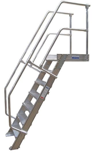 Алюминиевый трап с платформой - это прочная алюминиевая лестница использыемая для безопасного подхода к дверям или промежуточному междуэтажному уровню и т. п. в соответствии с требованиями EN ISO 14122. "Трап с платформой стационарный. Трап с площадкой из алюминия"