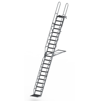 - Нижняя тетива трапа оснащена площадкой, которая может быть как приварена к трапу, так и откидываться.