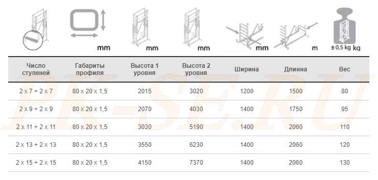 Вышки-туры предназначены для обеспечения удобства работы и безопасности работающих в строительных, мантажных, ремонтно-эксплуатационных и других работах на высоте. Конструкция лесов - долговечна и практична, выполнена из алюминиевого сплава. Рама имеет прочную стальную конструкцию на колесах для возможности передвижения. Рама имеет 4 регулируемых упора, исключающих возможность смещения конструкции во время работы. Надежная фиксация тетив лестниц в башмаках рамы. Выдвижные лестницы имеют надежные крепления на нужной высоте лесов. Опорная поверхность ступеней лестниц и рабочей площадки (платформы) имеет противоскользящее исполнение. Рабочая площадка (платформа) вышки-тур имеет люк для удобства эксплуатации. Рабочая площадка (платформа) имеет надежные крепления (крюки) для перемещения ее на нужную высоту. Вышка-тур имеет огражения, являющиеся средством защиты на высоте, а так же увеличивающие жесткость конструкции.
