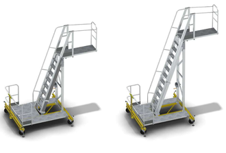 - Нижняя площадка оборудована рулевой трапецией и поворотными колесами Ø 200 мм с фиксаторами.