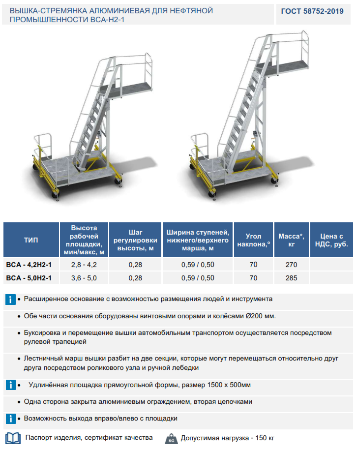 Вышка-стремянка алюминиевая для нефтяной промышленности ВСА-Н2-1 с широким основанием