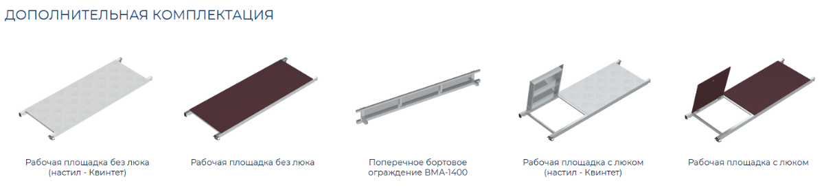 По согласованию могут комплектоваться алюминиевыми рабочими площадками, изготовленными