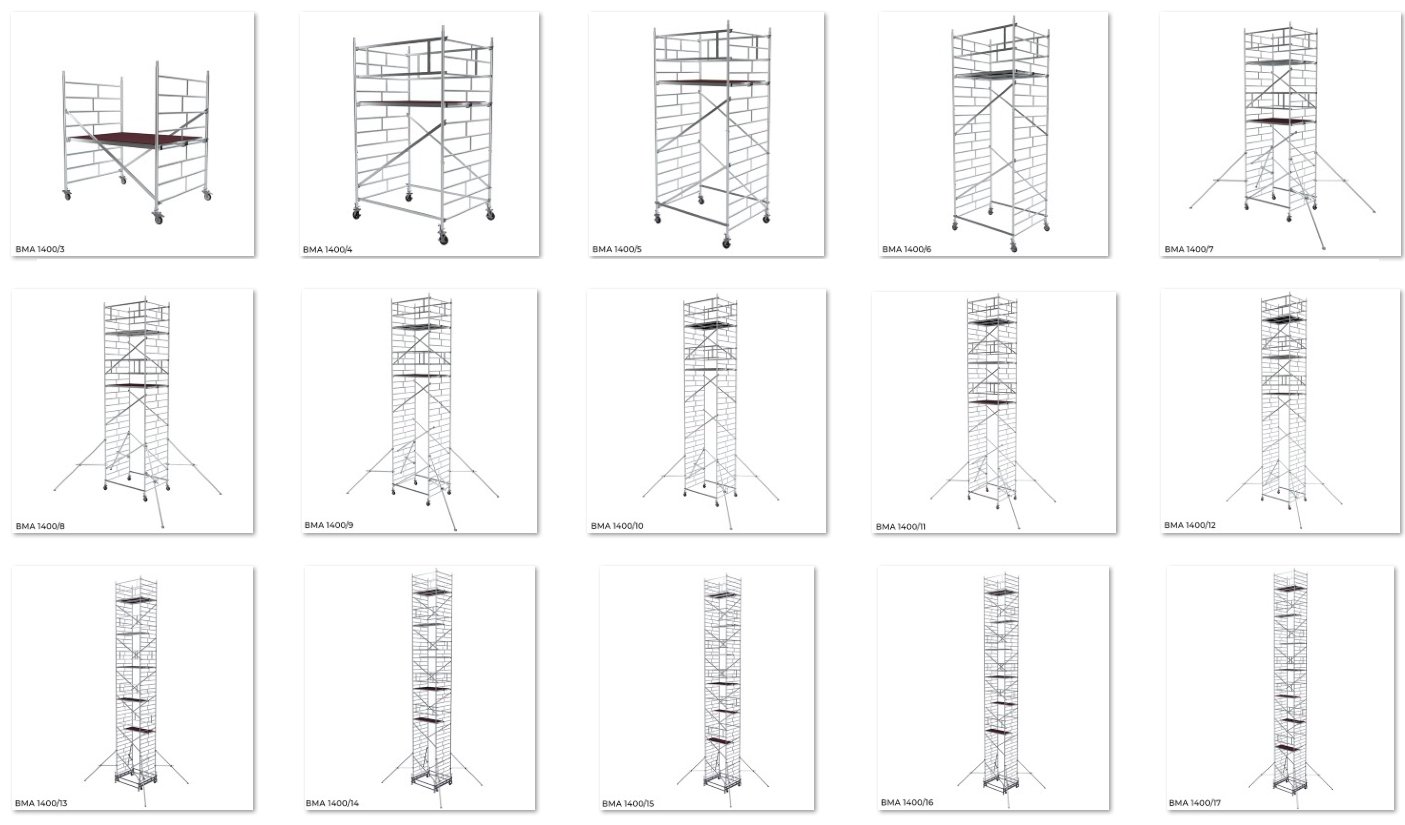 Вышка модульная алюминиевая передвижная ВМА-1400